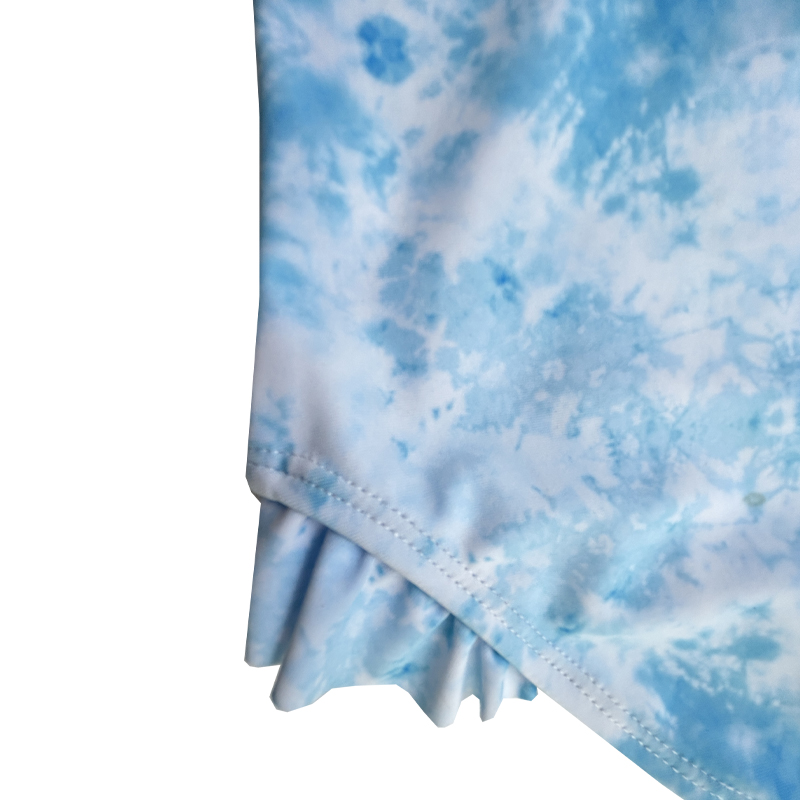 *hem s flonce, u-shape zpět, vysoký ealstic, dobřenoste, jeden-pieces tisk, soft