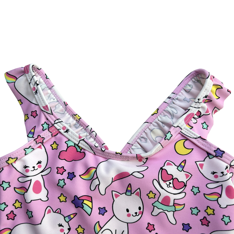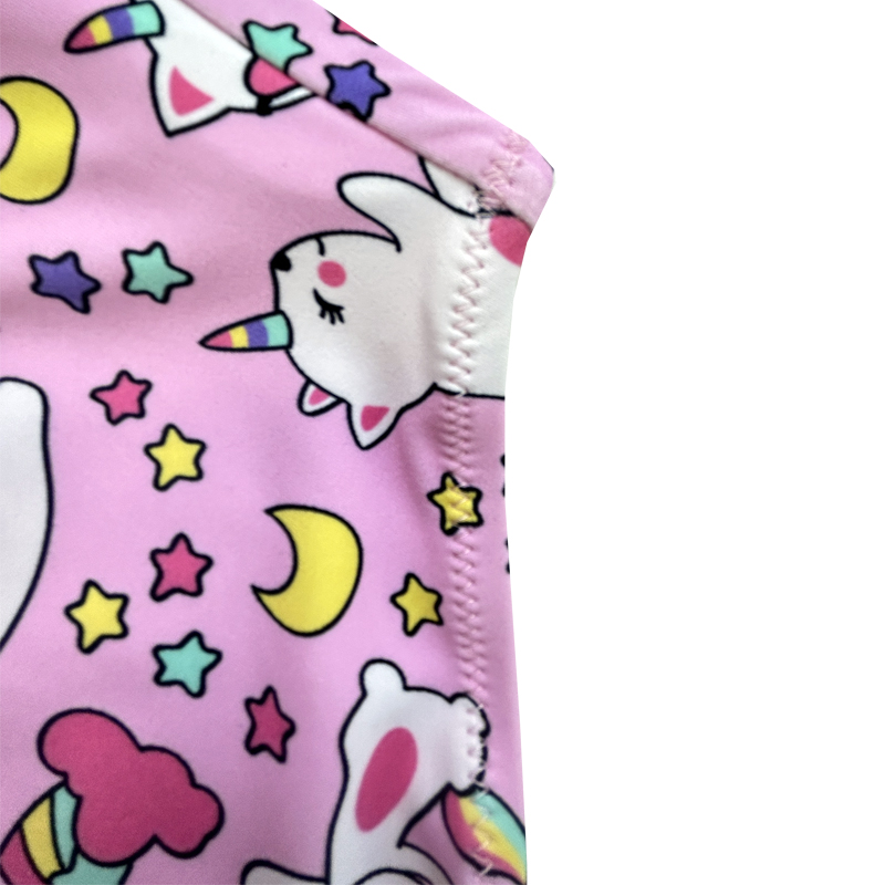 *květinový tisk, jednoroženský karikaturu, vysoký elastický, ramenní popruhy s plisovanými okraji, dva kusy.